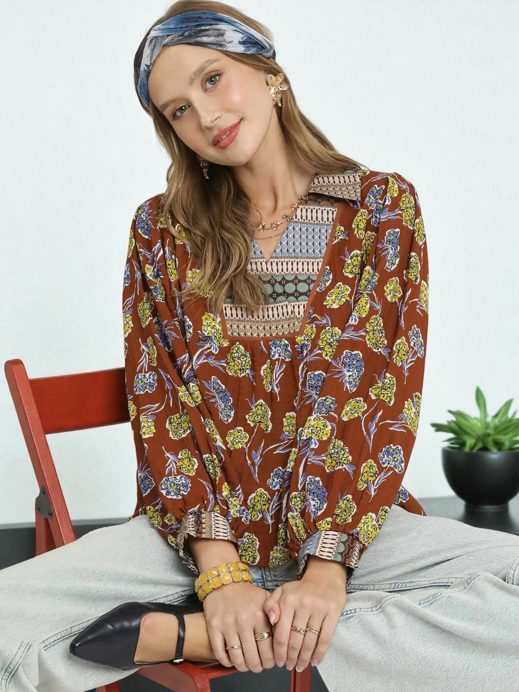 Floral Print Collar Blouse