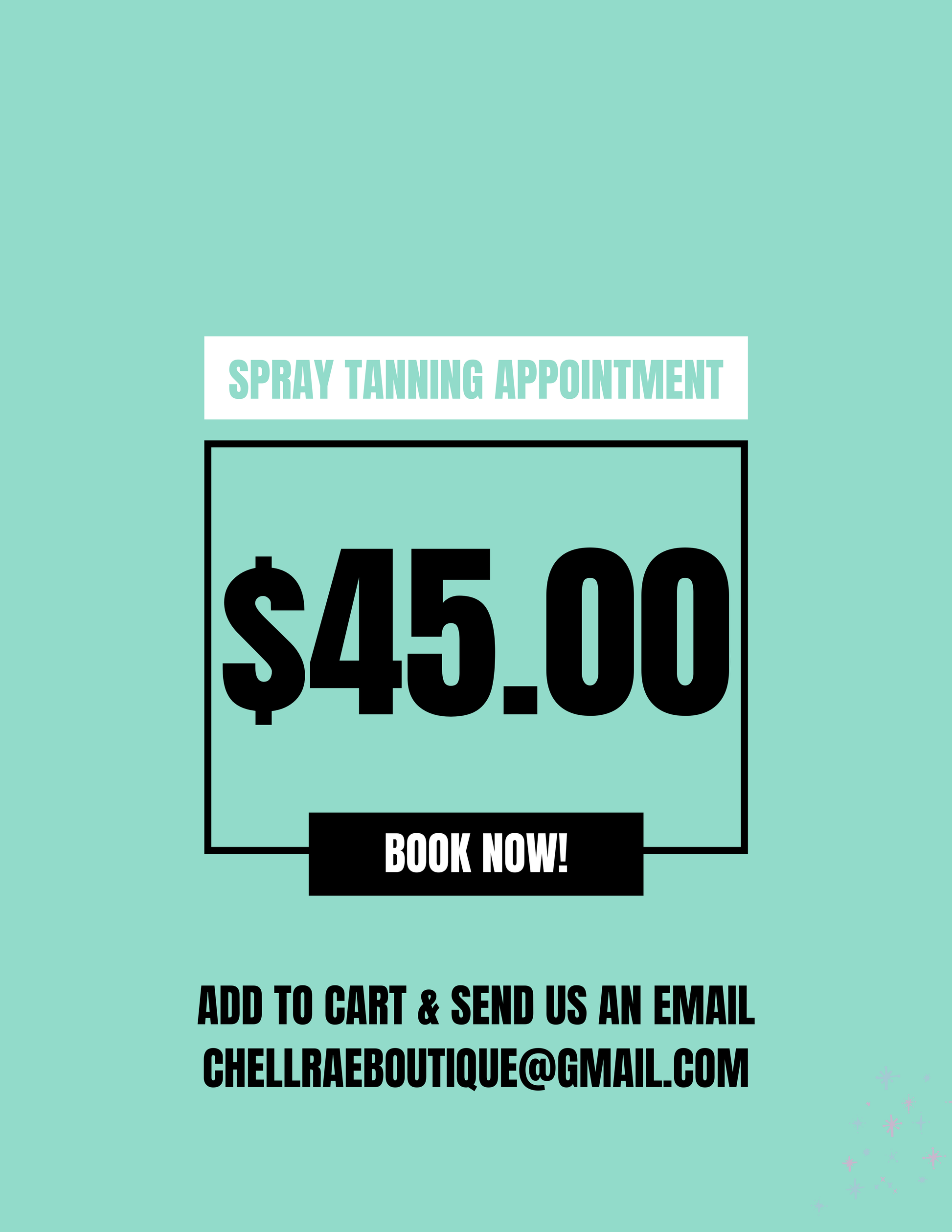 To book your spray tan appointment, simply add this service to your cart for free and check out — this helps us gather your information so we can contact you directly to schedule your session.