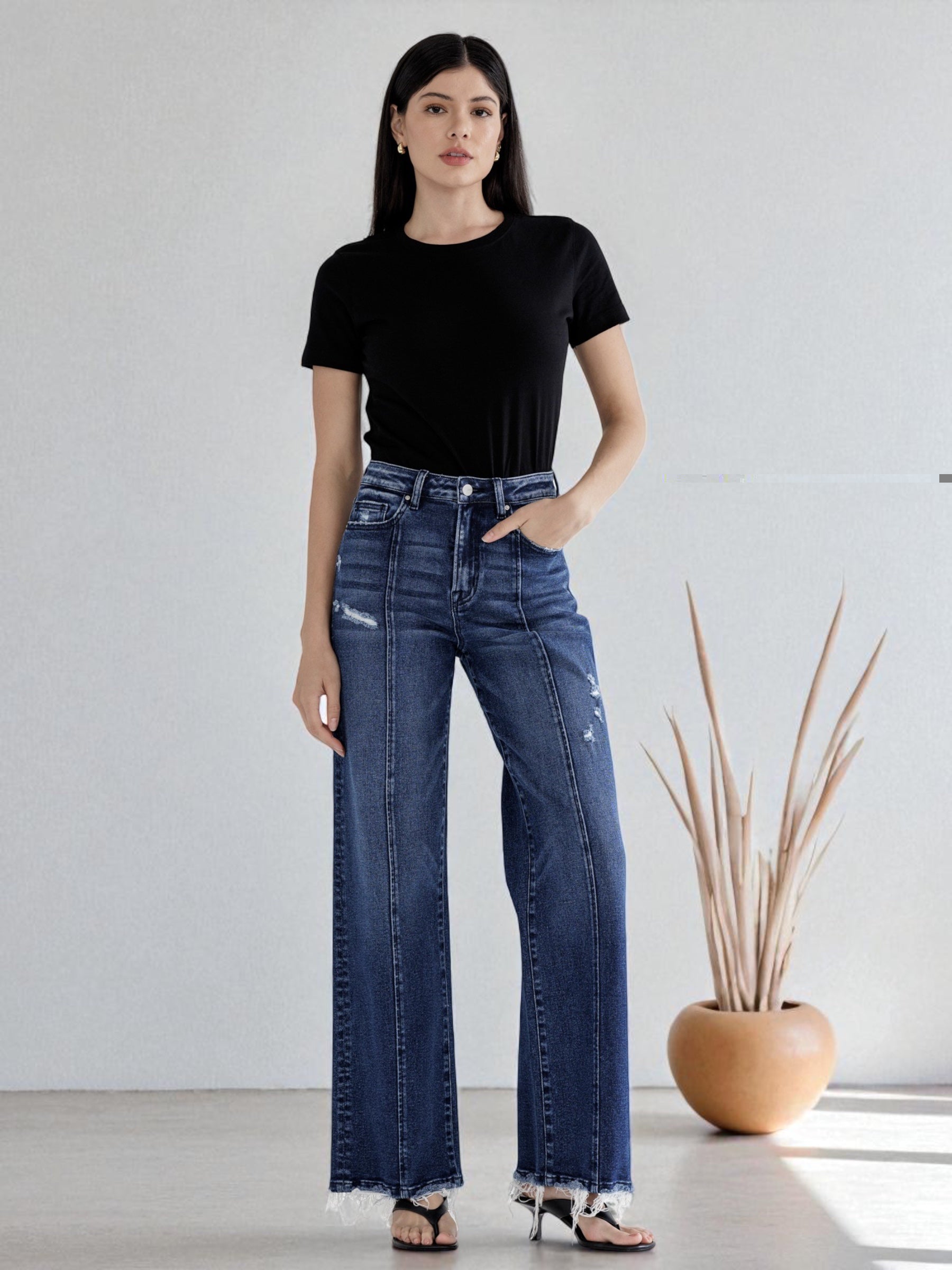 SUPER HIGH RISE SEAM FRONT WIDE LEG 98% COTTON, 2% SPANDEX INSEAM: 32"