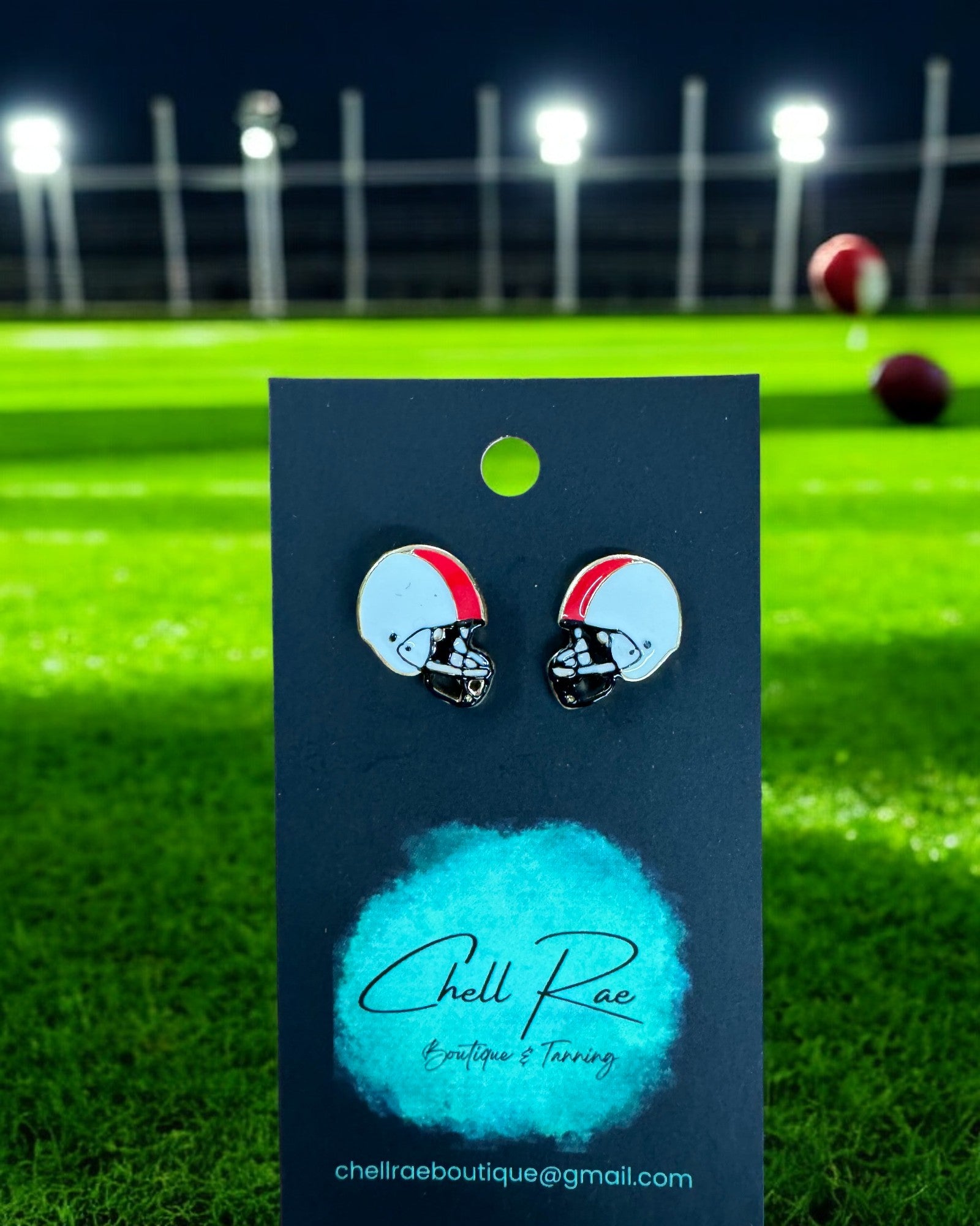 The perfect game day earrings featuring either black helmets with red accents or white helmets with red accents.
