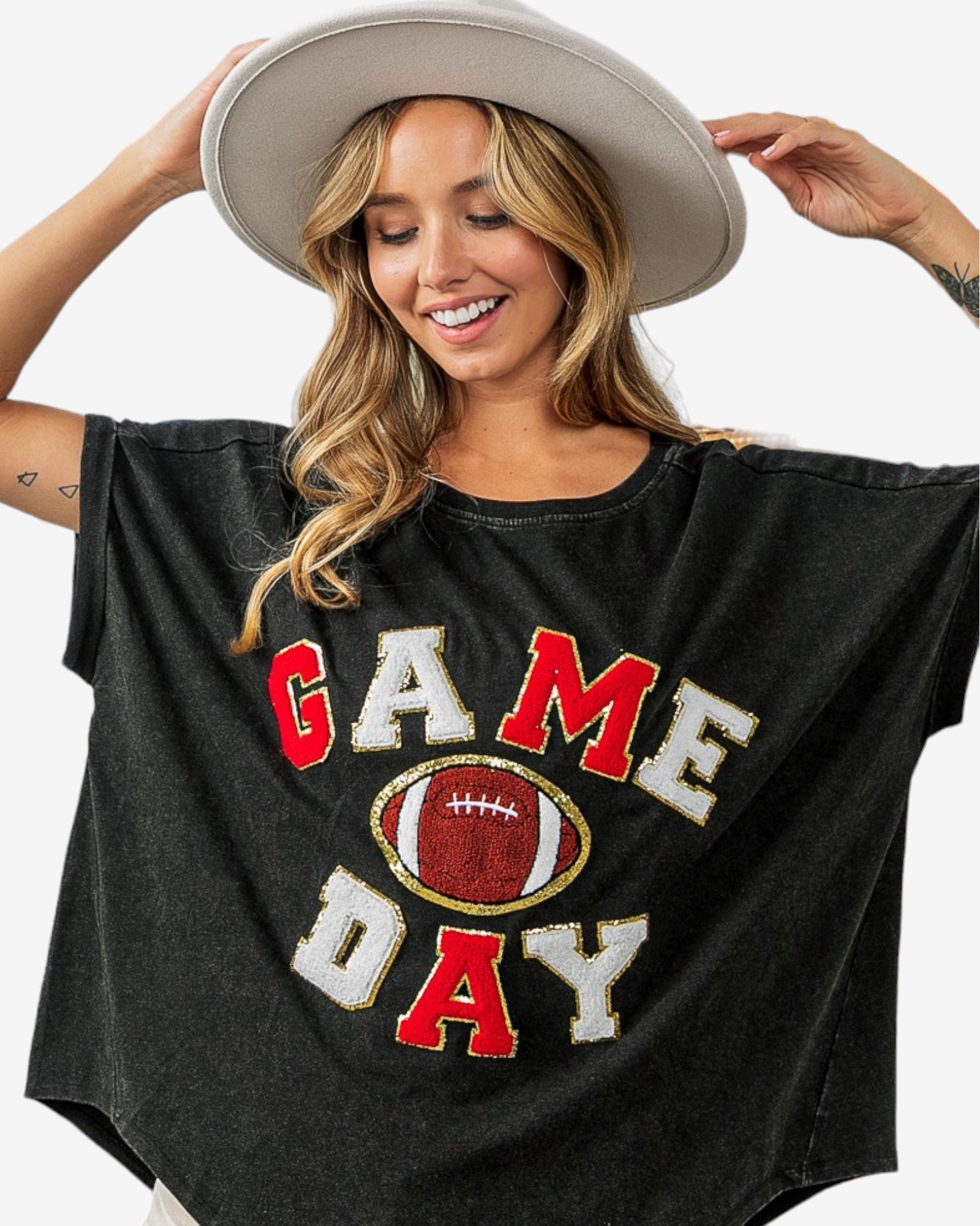 GAME DAY LETTER LOOSE FIT VINTAGE WASHED TOP.
