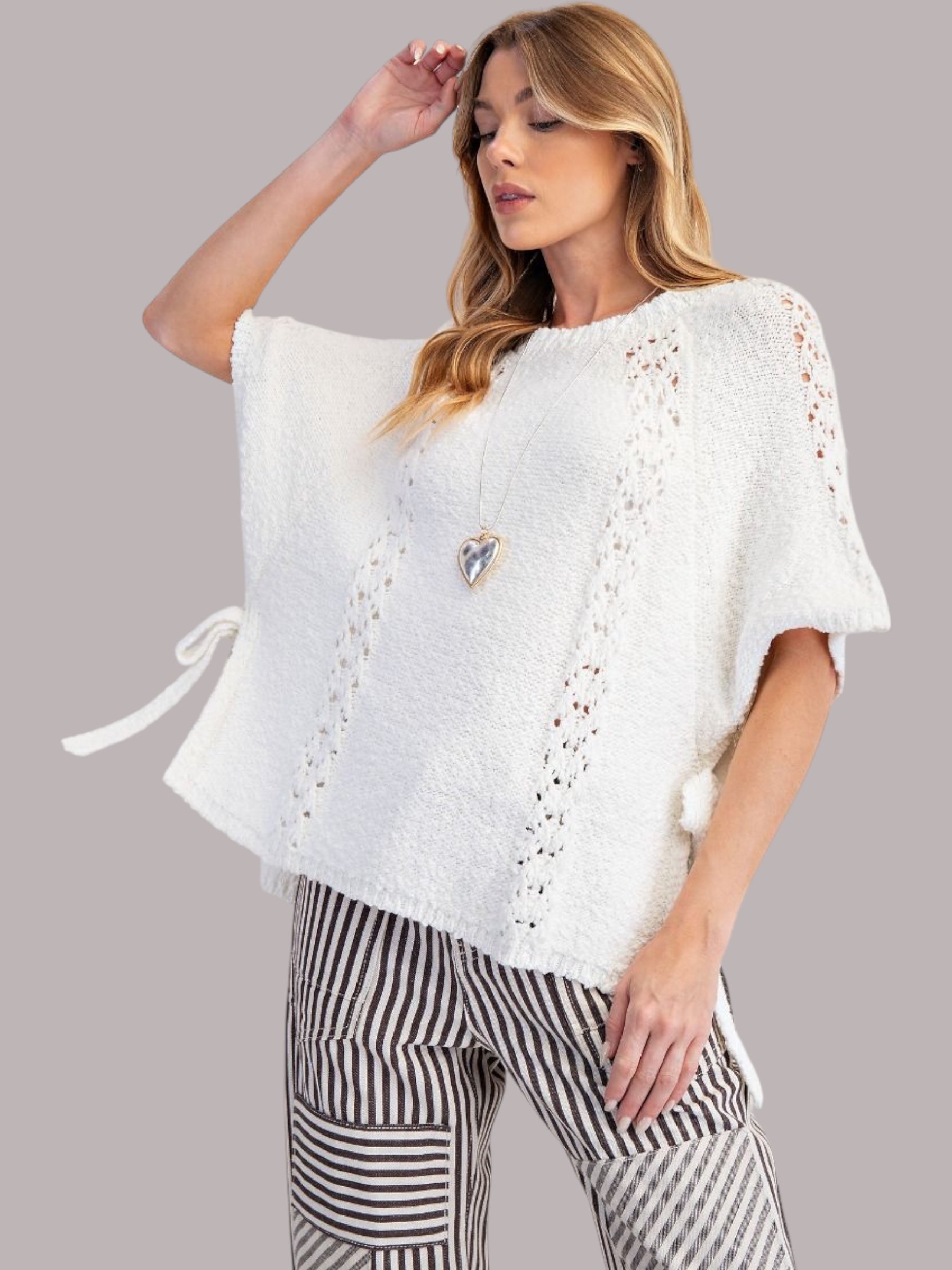-SHORT SLEEVES WITH CROCHET-STYLE LACE PANELS