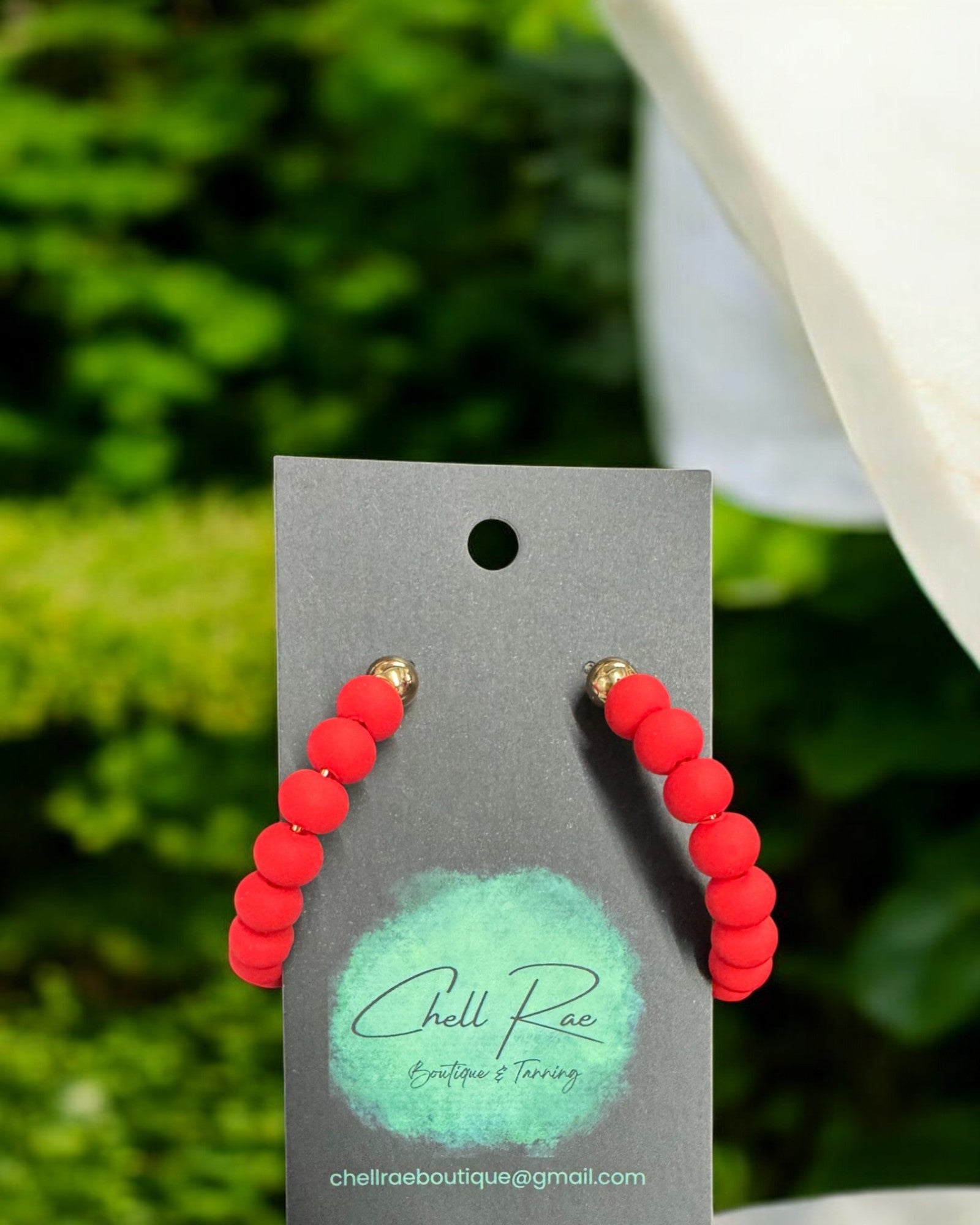The perfect light pink, purple, or red 6mm clay ball hoop earrings to make any outfit a spring splash!