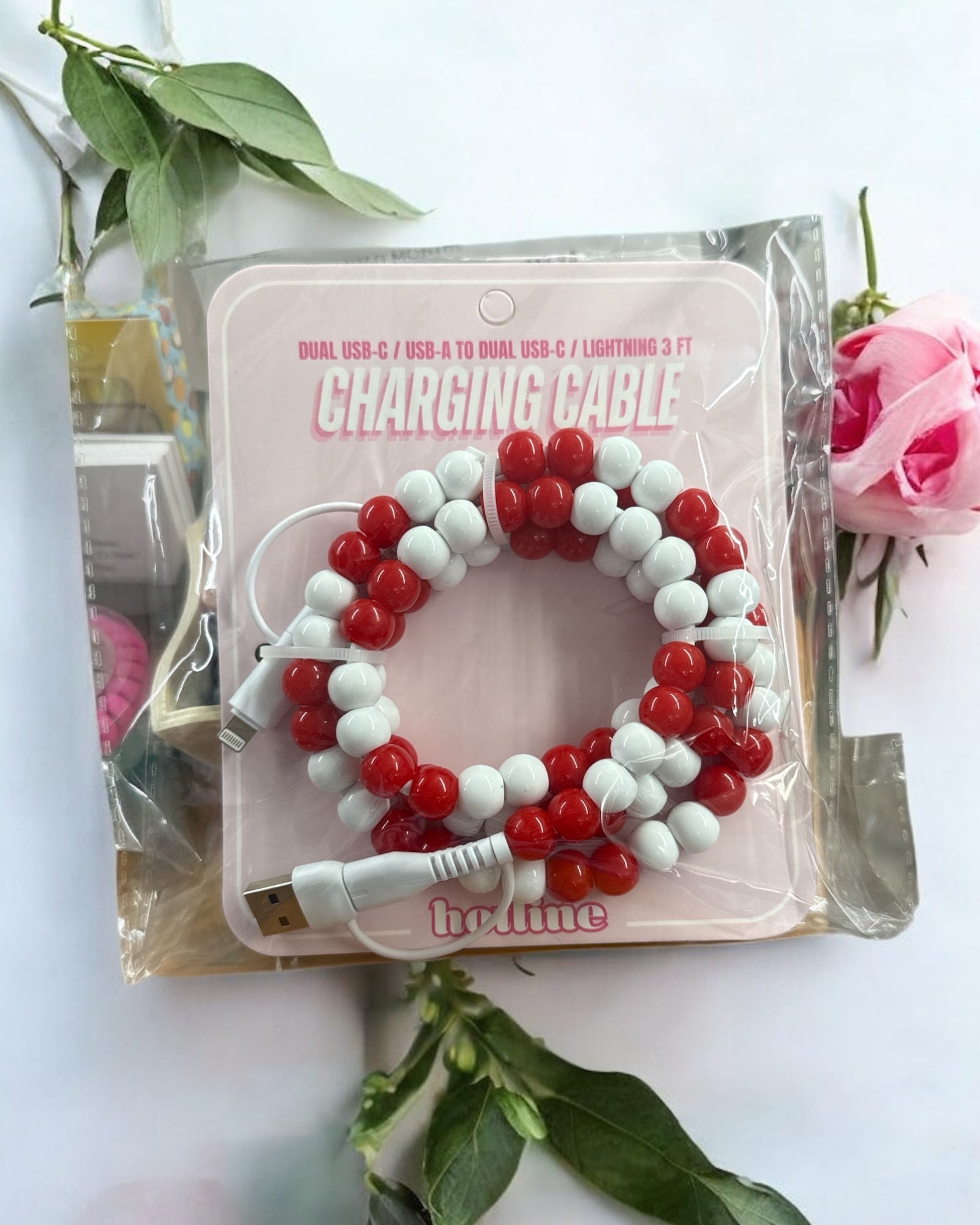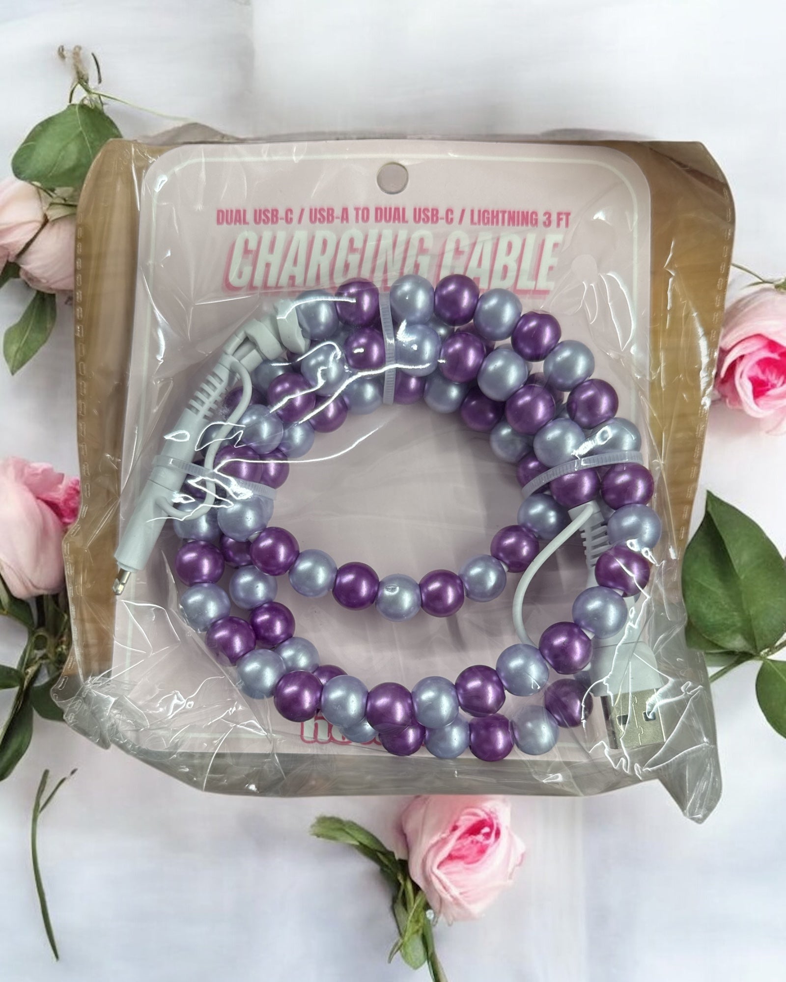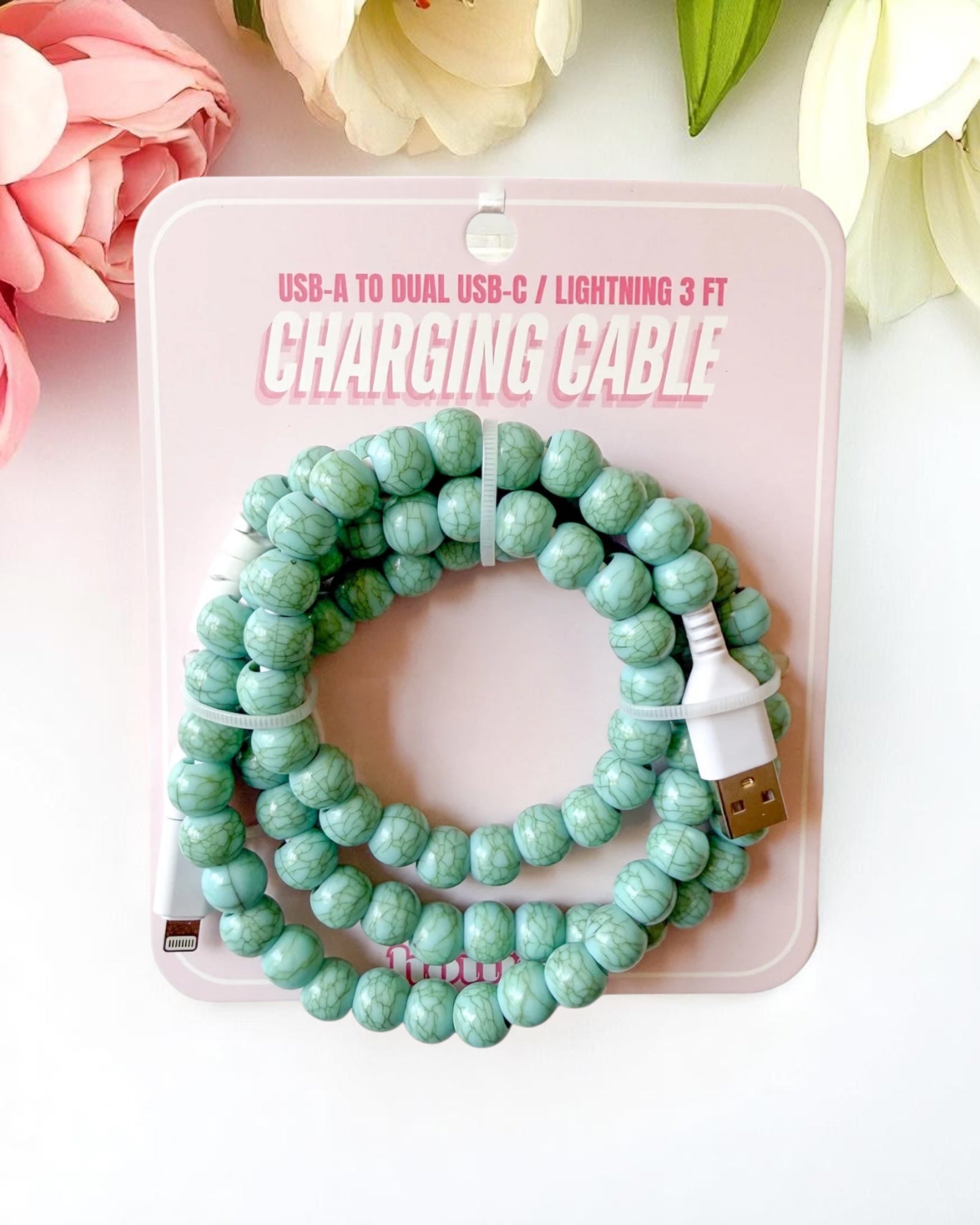 Stay charged and on trend with these cute and stylish charging cables! Perfect for your iPhone and androids with its dual lightning cord and USBc. Don't let your battery run out, stay connected in style.
