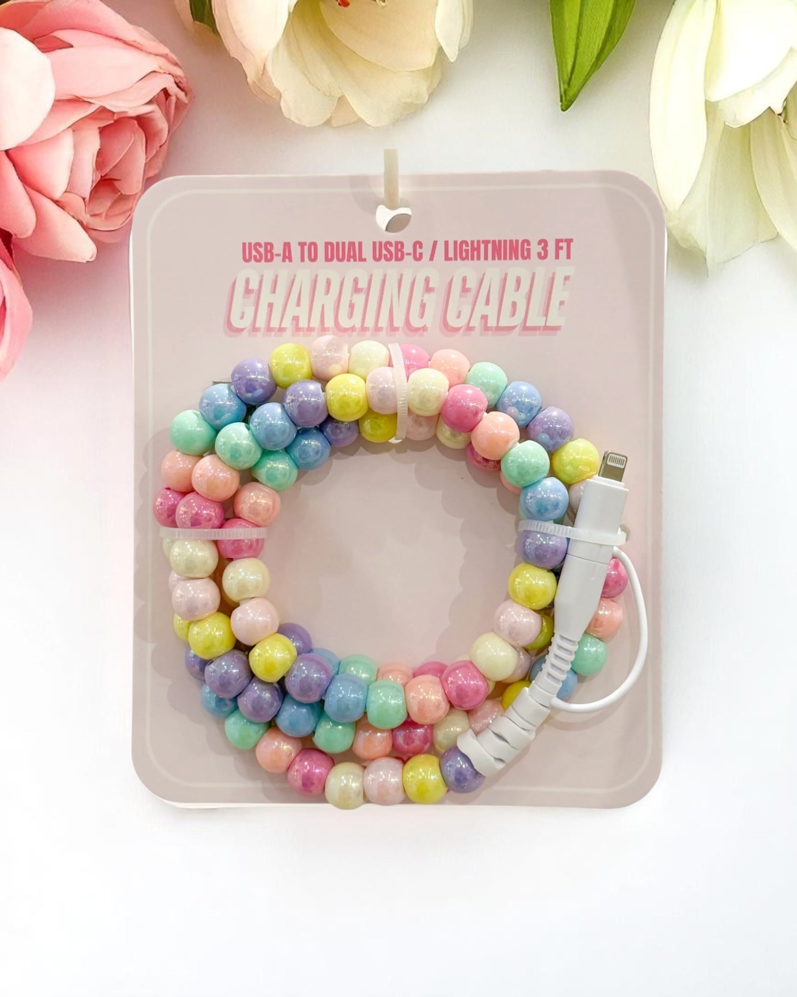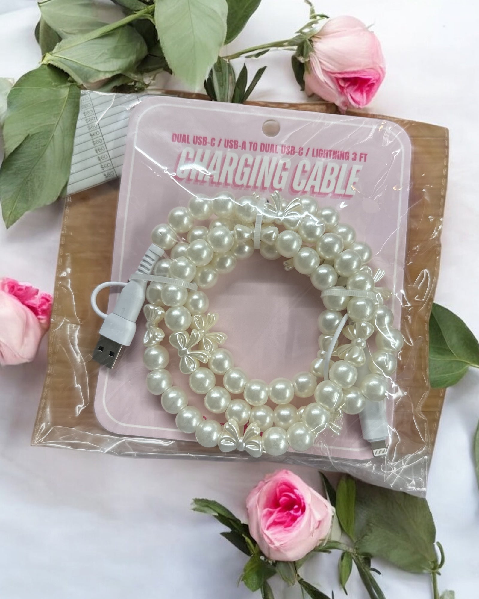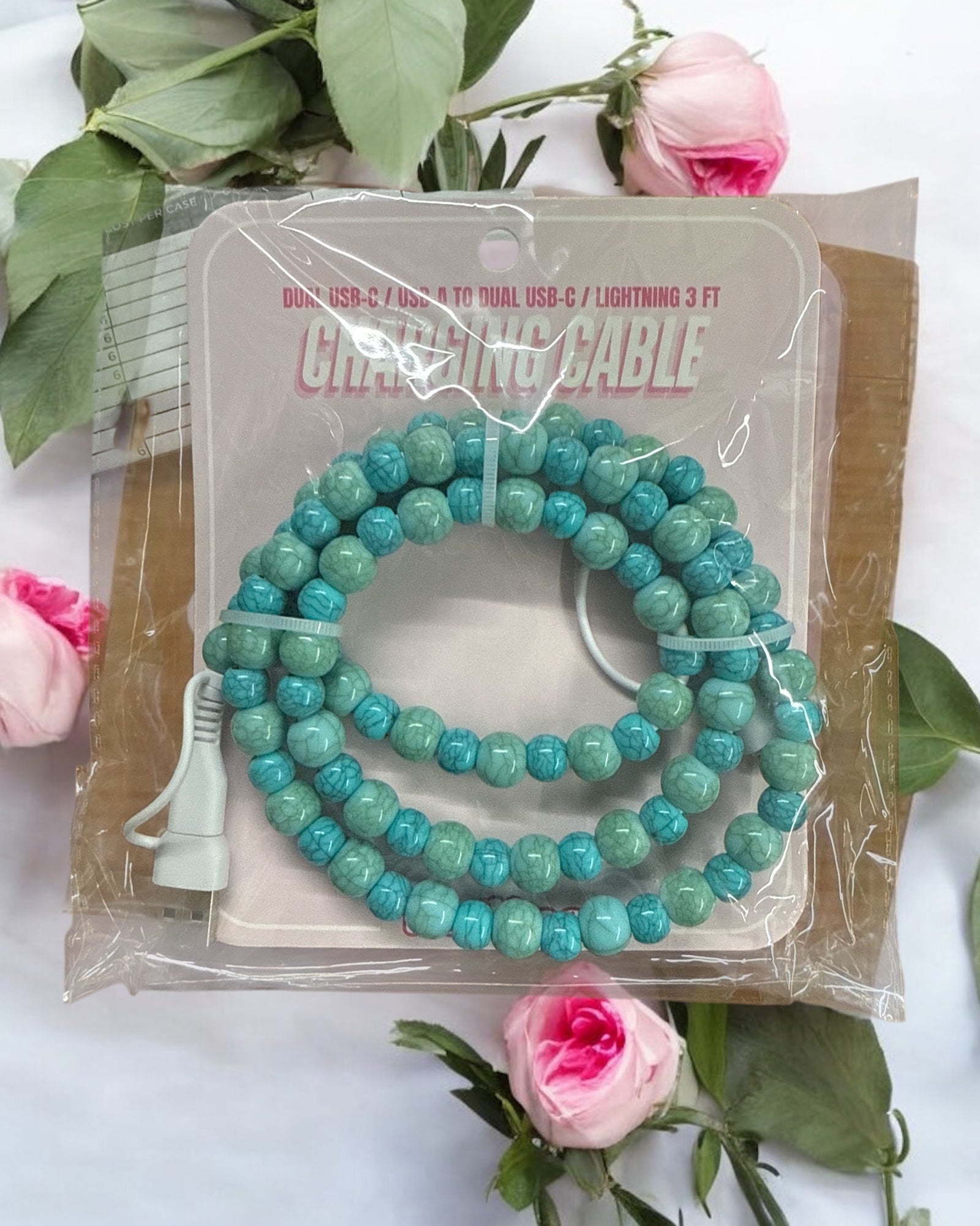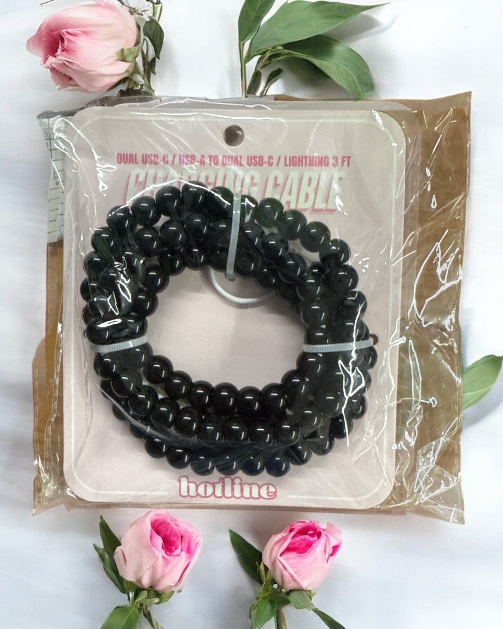 Stay charged and on trend with these cute and stylish charging cables! Perfect for your iPhone and androids with its dual lightning cord and USBc. Don't let your battery run out, stay connected in style.