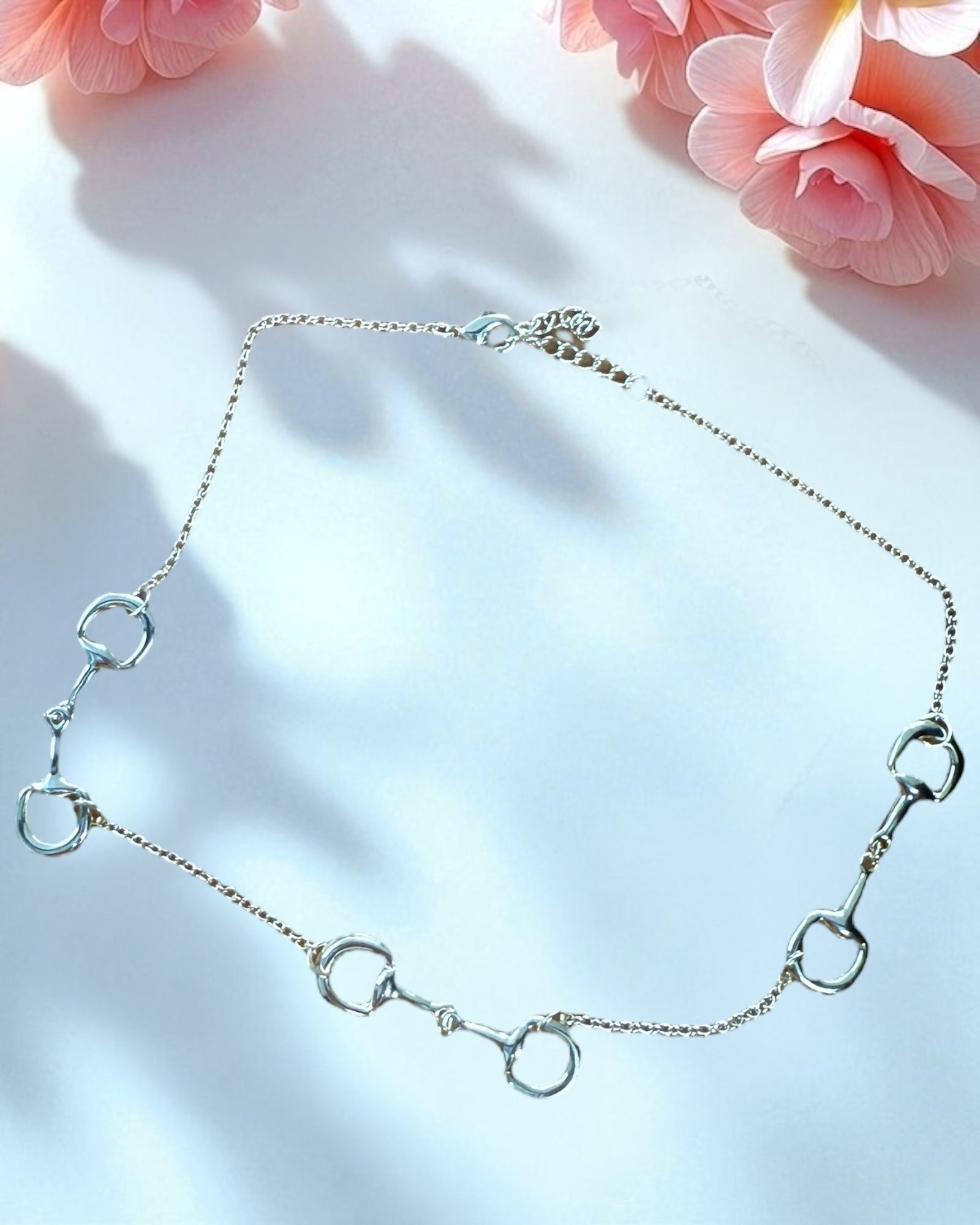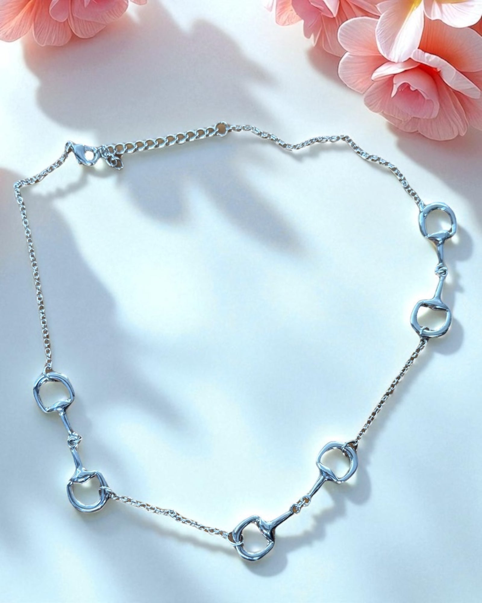 Rein in your style with our elegant short snaffle bit necklace. This sophisticated piece features beautifully crafted snaffle bits, adding a subtle equestrian nod to a classic necklace design. Perfect for adding a unique touch to both casual and more dressed-up looks.