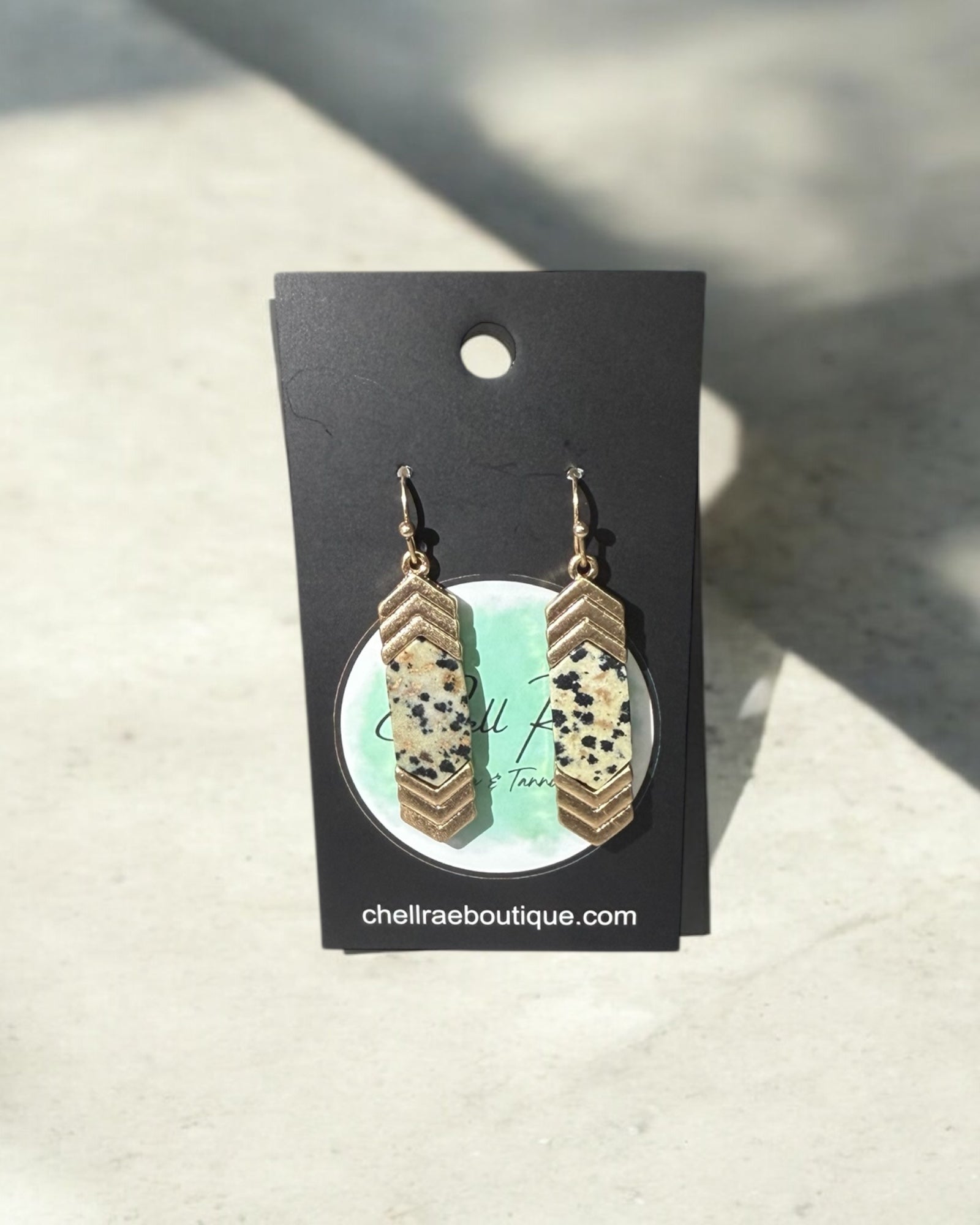 Add a touch of organic beauty with these dangle earrings featuring unique marbled stones accented by warm gold details or blue stone accented with gold details. The intriguing patterns of the stones combined with the metallic shine create a subtly captivating look.